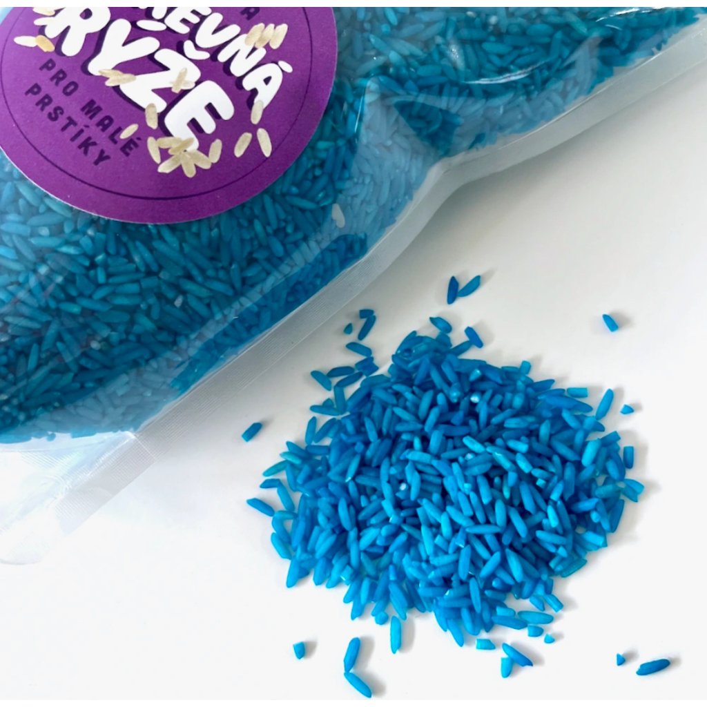Barevná rýže v modrém odstínu je ideální materiál pro smyslové hraní, tvoření i třídění. Děti si při přesypávání, nabírání nebo schovávání drobných předmětů přirozeně rozvíjejí jemnou motoriku, soustředění i fantazii. Skvěle se hodí do senzorických táců, a smyslových aktivit. Vytvořte si s dětmi hravý oceán plný klidu a kreativity!