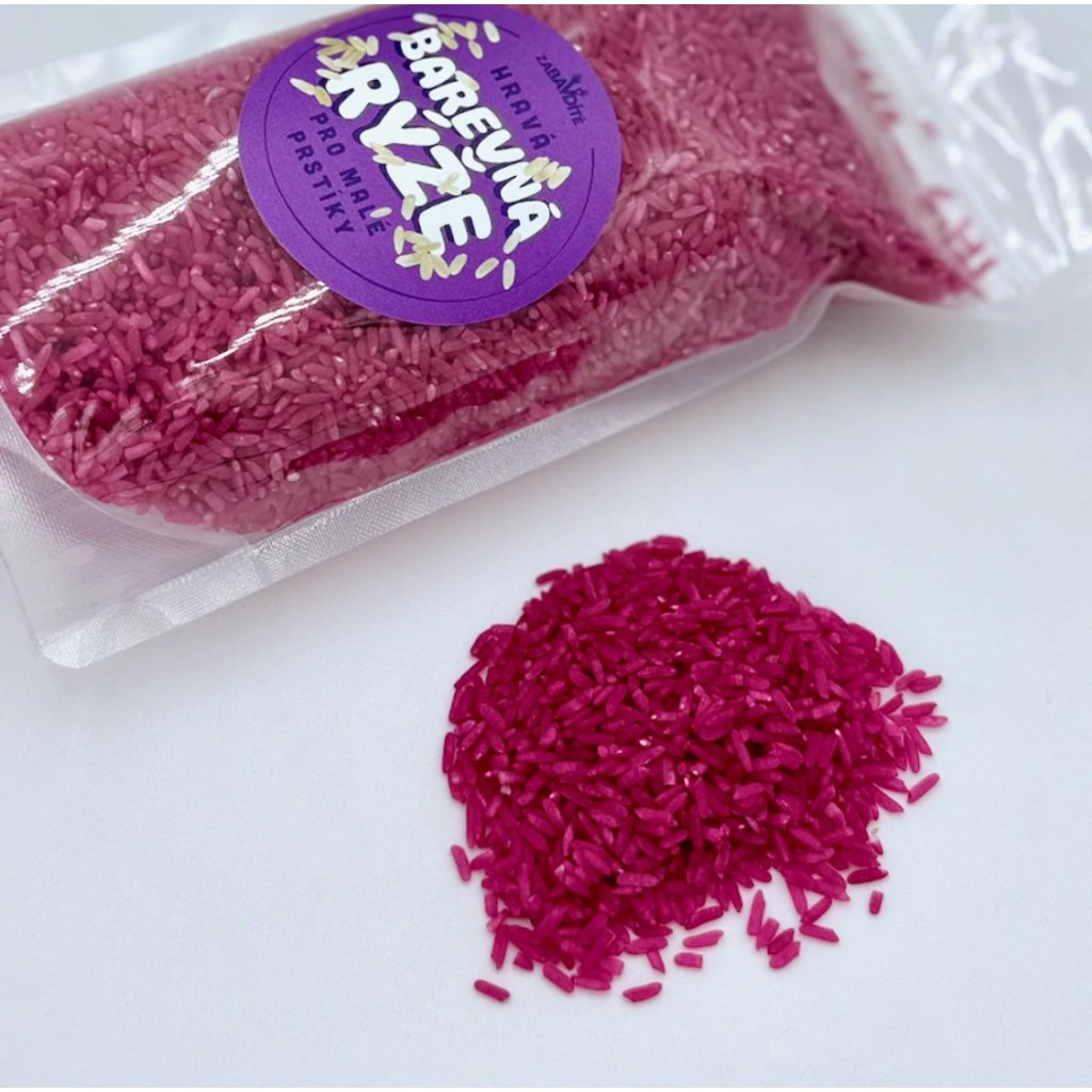 Barevná rýže v něžném růžovém odstínu promění dětské hry v barevnou pohádku. Skvěle se hodí pro třídění, přesypávání i tvoření květinových či fantazijních scén, při kterých děti rozvíjejí jemnou motoriku, soustředění a kreativitu. Ideální doplněk pro senzorické třídící a vysypávací tácy a smyslové aktivity plné hravé energie.