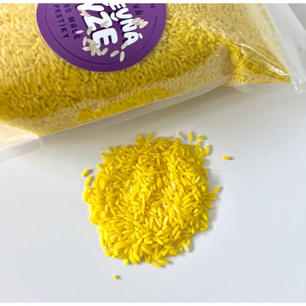 Barevná rýže Žlutá je kouzelný materiál pro smyslové hraní, tvoření a objevování dětí od 3 let. Při hraní s rýží si děti rozvíjejí jemnou motoriku, kreativitu i smyslové vnímání.