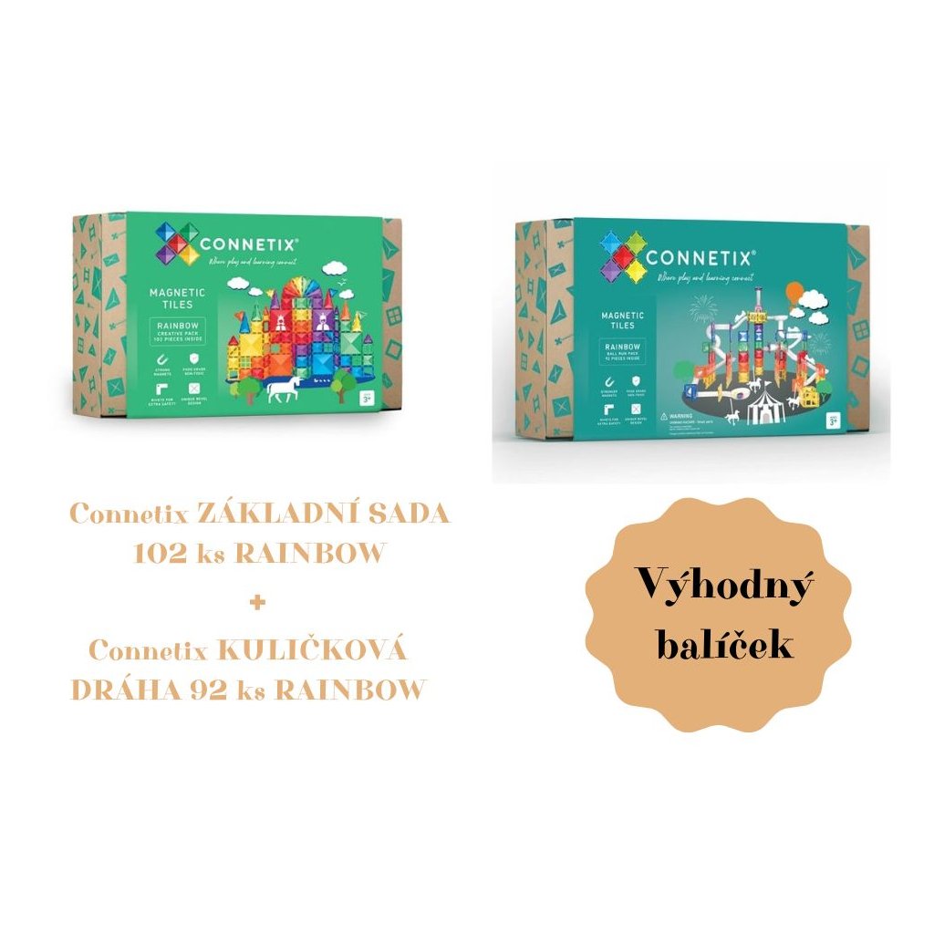 - Obsahuje dva nejoblíbenější Connetix sety – základní sadu 102 ks a kuličkovou dráhu 92 ks.