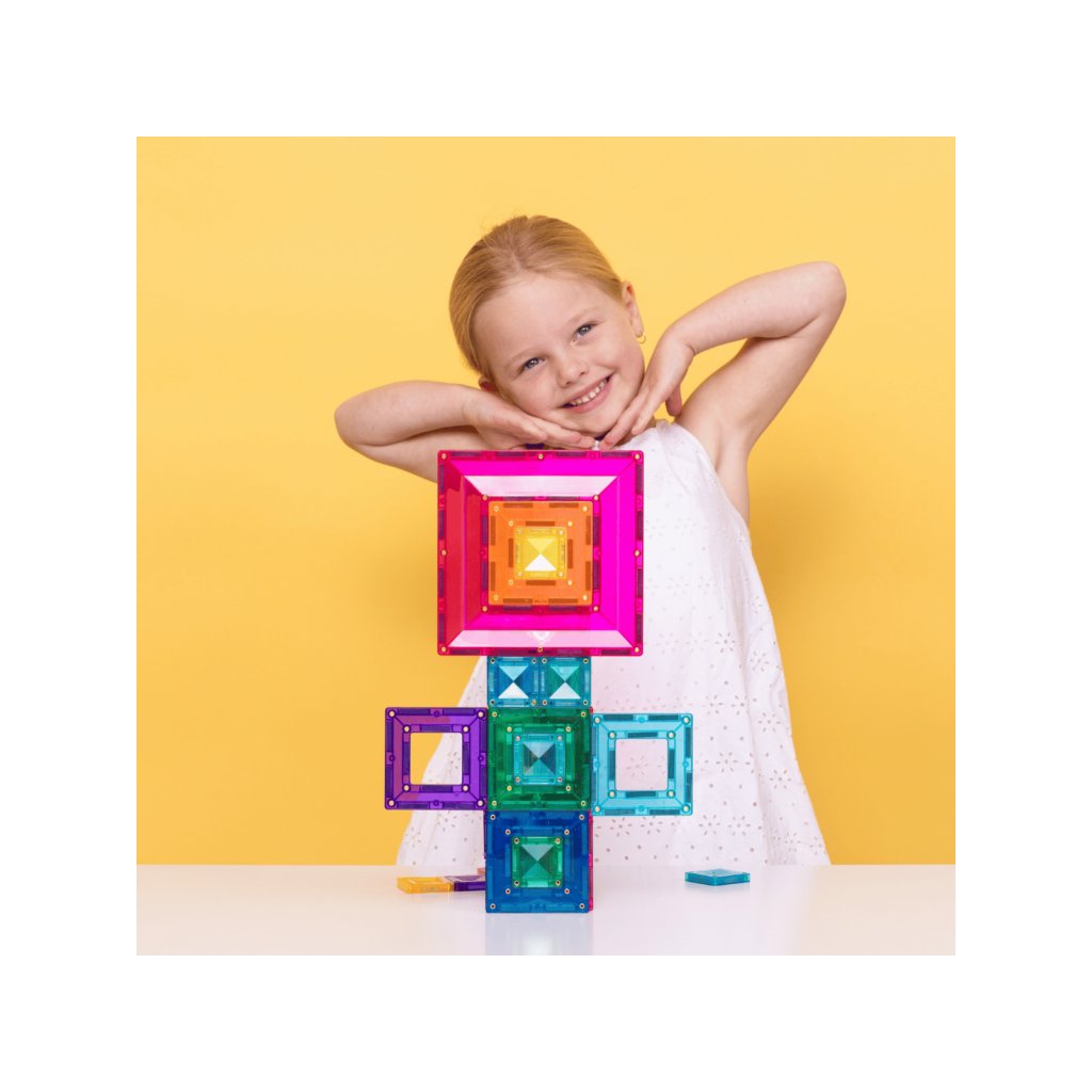 Objevte nový rozměr tvoření s jedinečnými portálovými dílky CONNETIX! Tato sada v osmi zářivých barvách nabízí tři velikosti čtverců s otevřeným středem – jako rámečky, které do sebe krásně zapadají. Díky otočné Smart-Spin technologii a magnetickému spojení ze všech stran mohou děti stavět do výšky, do prostoru i do fantazie – a přitom se nenápadně učit o rovnováze, konstrukci, vytrvalosti i spolupráci.
