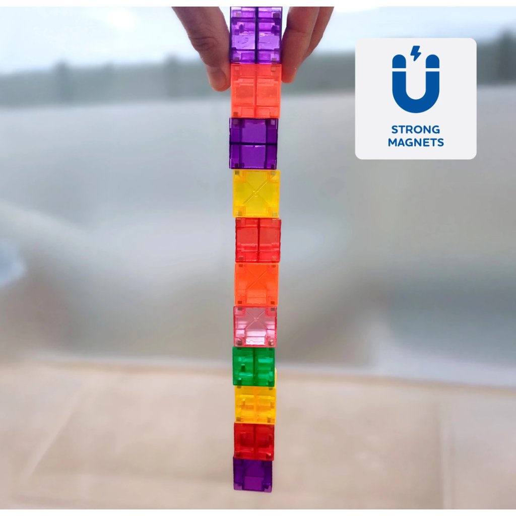 Díky bezpečným, netoxickým materiálům a pevným magnetům mohou i menší děti stavět stabilní konstrukce. Sada nabízí hodiny samostatné i společné zábavy, které podporují rozvoj kreativity a motoriky.