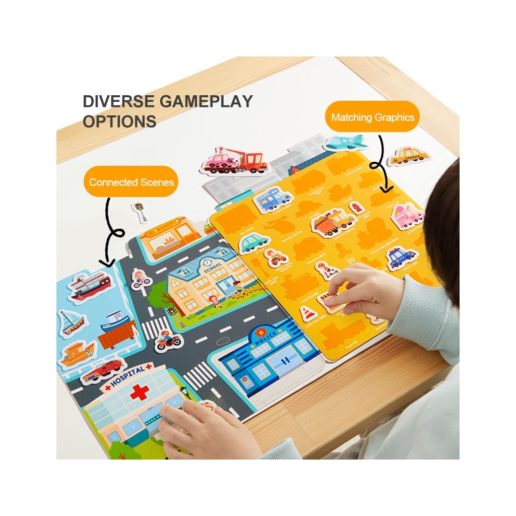 Stačí otevřít knížku, vybrat si svoje oblíbené autíčko a začít tvořit vlastní dopravní situace. Děti mohou řídit provoz, stavět kolony, organizovat městskou dopravu nebo vytvářet příběhy o cestování, záchraně či dobrodružství na silnici.