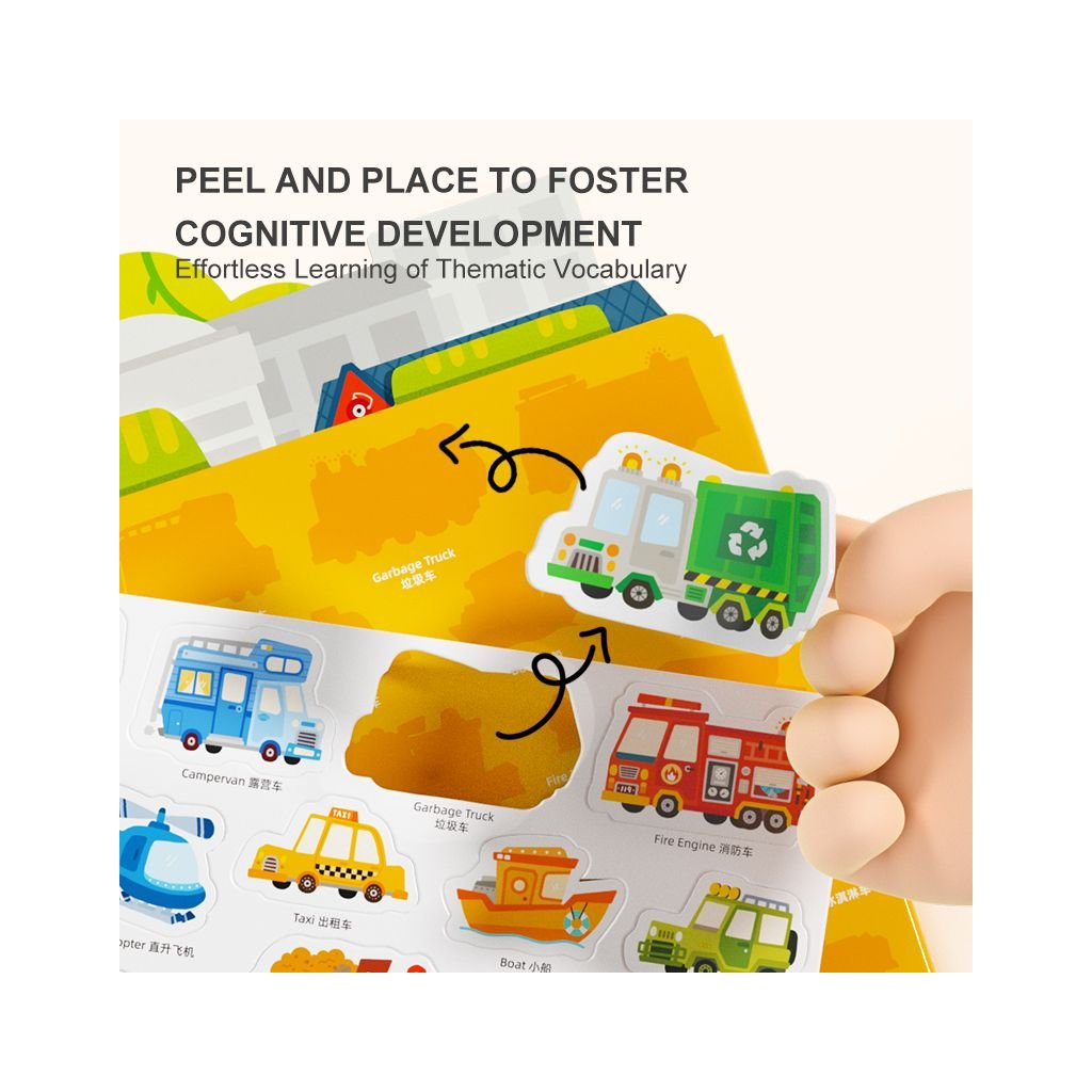 Stačí jen otevřít knížku, vybrat si gelovou samolepku a začít tvořit. Děti mohou stavět vlastní městské scénky: zvířátka jedoucí na kole, nakupující v obchodě, čekající na autobus nebo prozkoumávající parky. Díky možnosti samolepky kdykoliv odlepit a nalepit jinam si malí tvůrci mohou své město stále měnit a doplňovat.