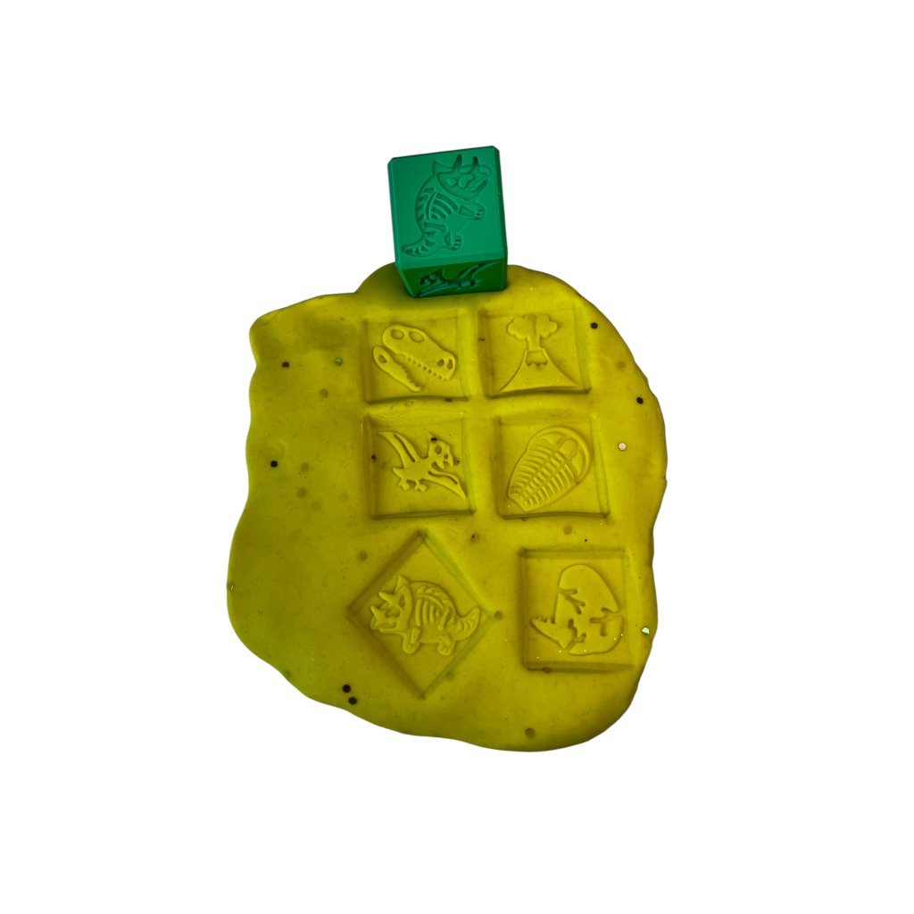 Otiskovací kostka Dinosauři vykouzlí do modelíny i kinetického písku motivy dinosauřího světa. Vyrobeno z ekologického PLA materiálu – bezpečné pro děti, šetrné k přírodě. Skvělé pro rozvoj fantazie i jemné motoriky.