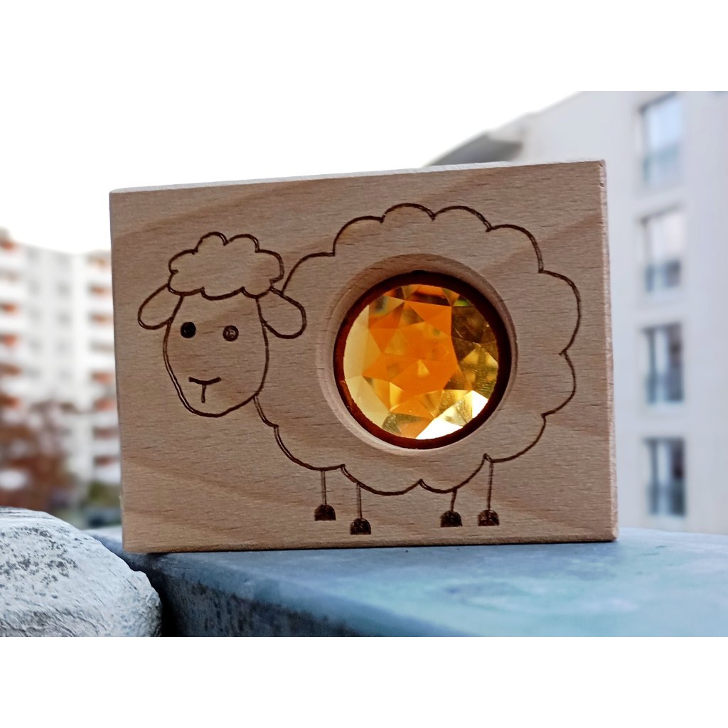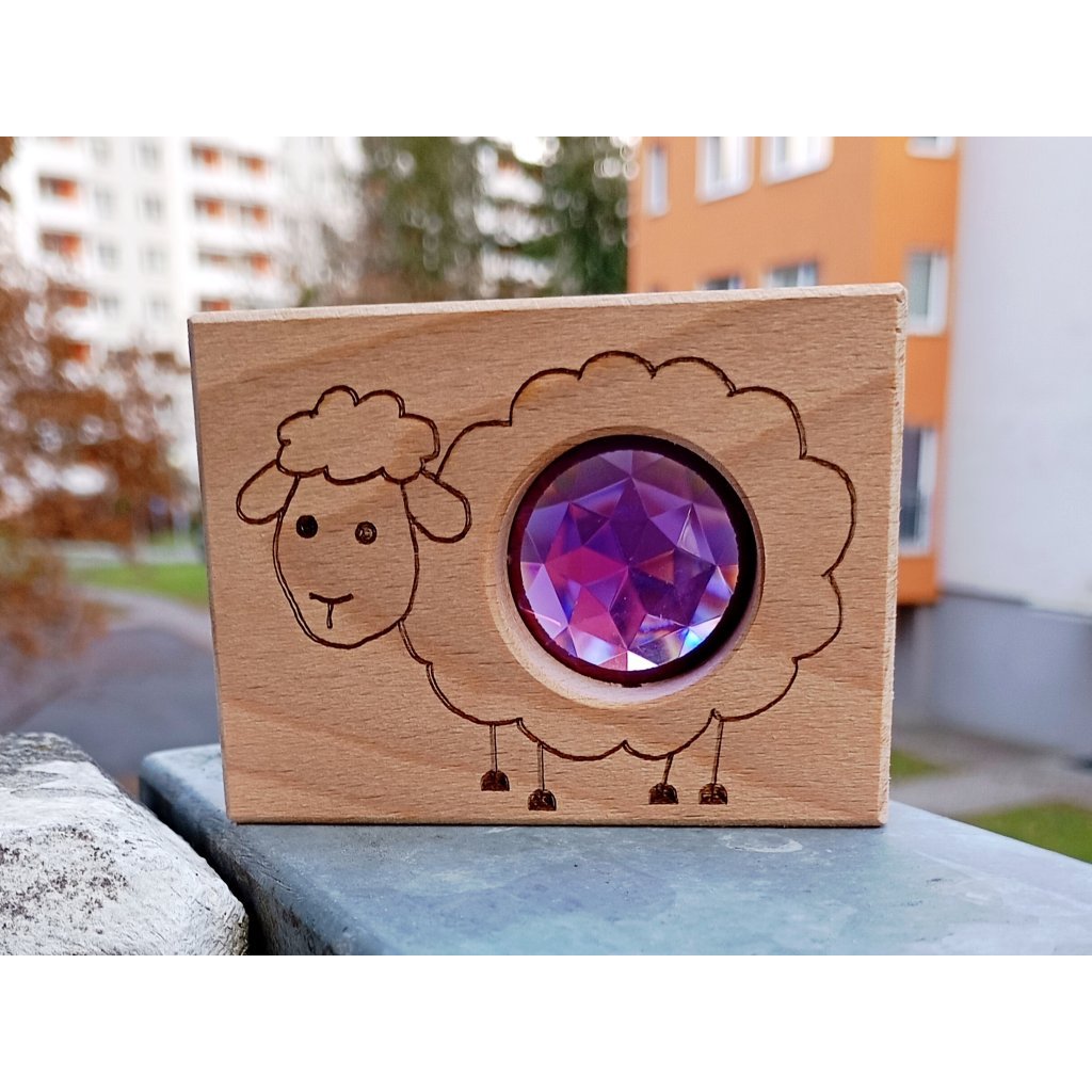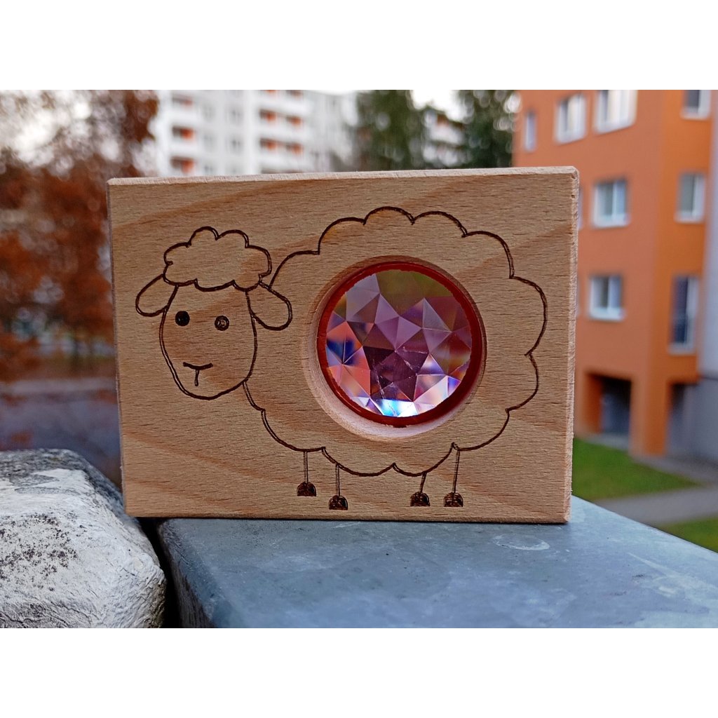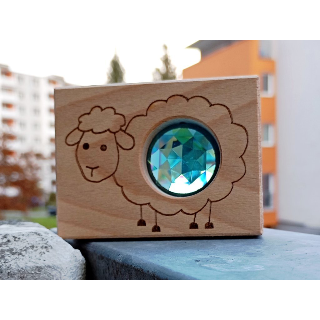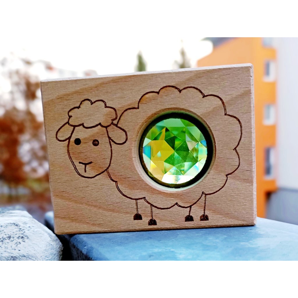 Objevte svět skrz barevné sklíčko! Kuk-kostka s motivem beránka promění sluneční paprsky v duhovou hru, která rozvíjí fantazii i smysly dětí.