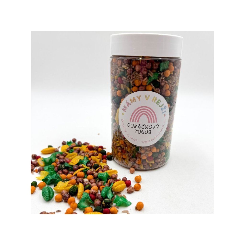 Barevný sypký materiál, který promění obyčejnou hru v kouzelné dobrodružství! V 660g balení najdete rýži, cizrnu a rozmanité těstoviny obarvené potravinářskou a akrylovou barvou v podzimních tónech.