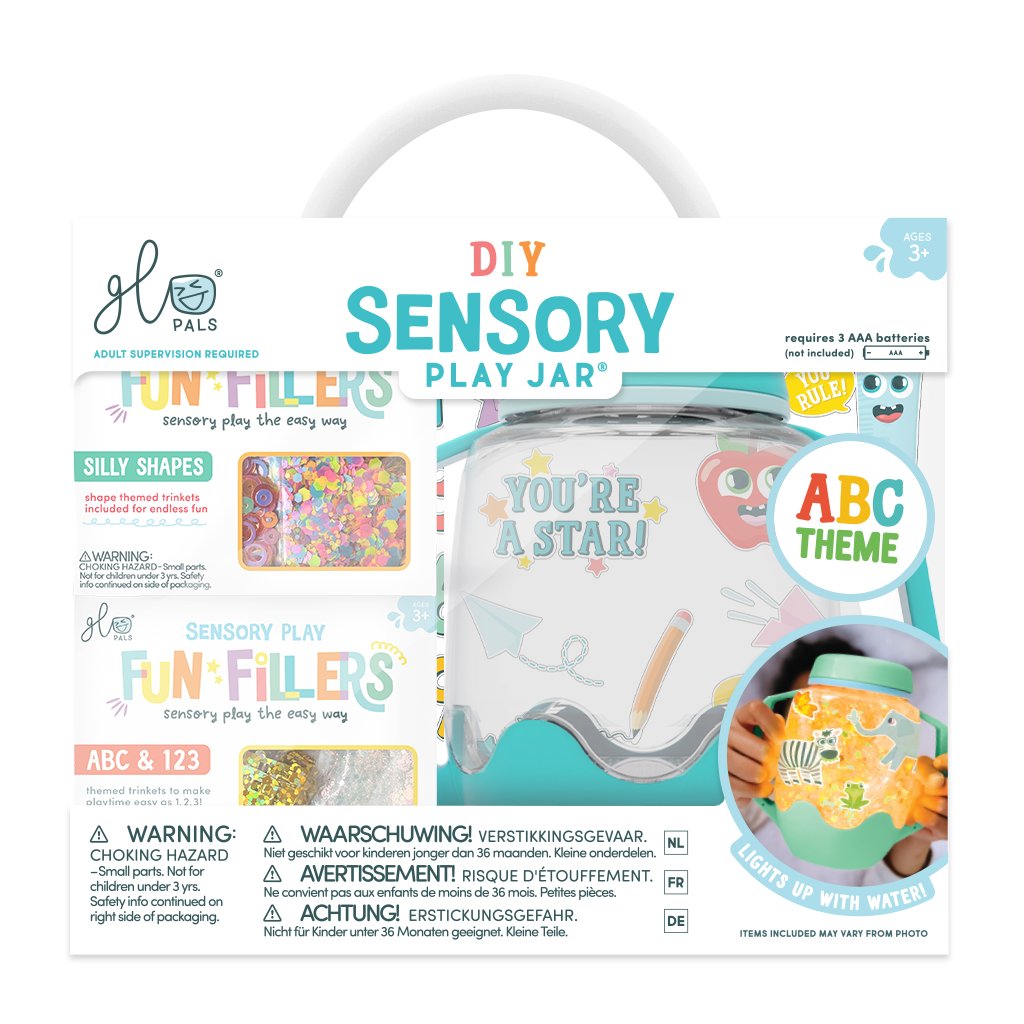 Glo Pals Senzorická sada ABC – svítící senzorická láhev s doplňky