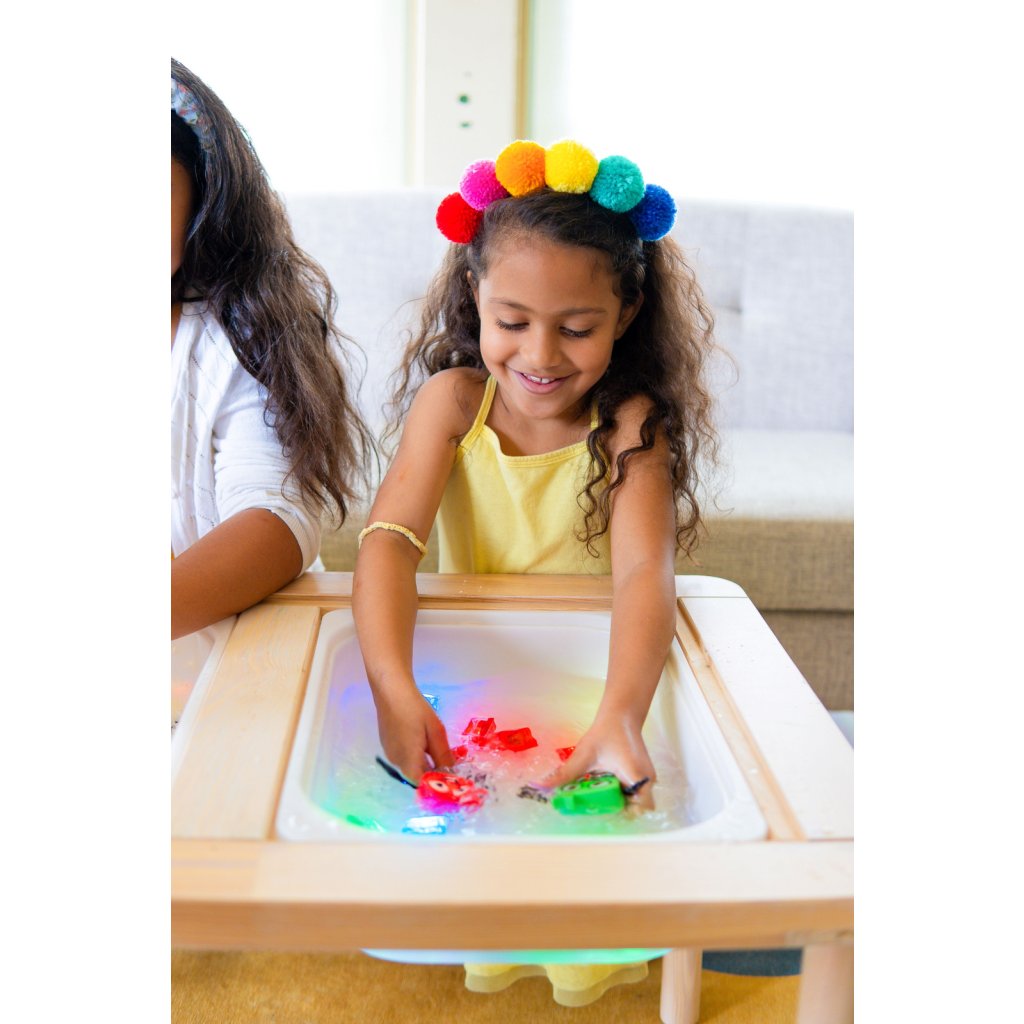 3) Kreativní smyslová hračka - kostky se rozsvítí při kontaktu s vodou., využijete je pro hry rozvíjející motorické dovednosti, smysly a kreativitu. Děti mohou kostky lovit pomocí nejrůznějších pomůcek .