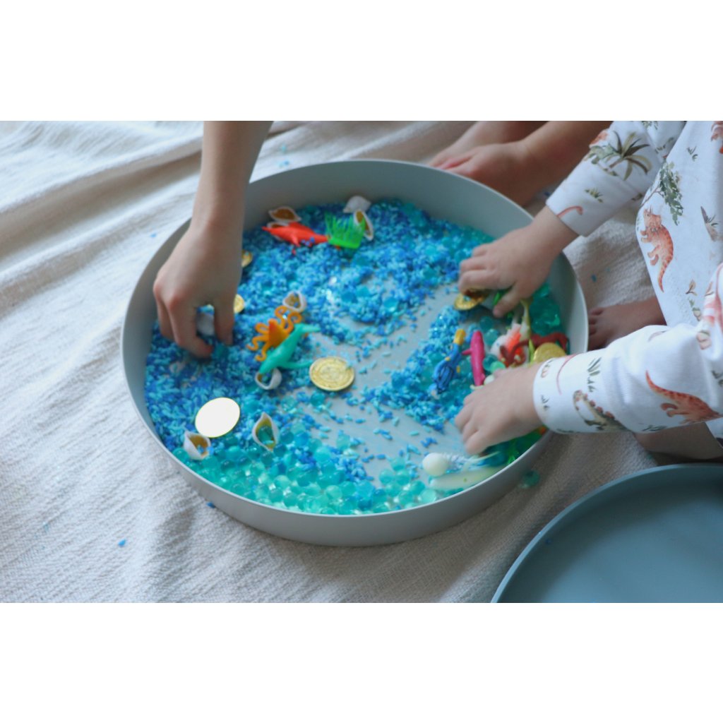 Tác Tray Play je ideální pomocník pro smyslové a kreativní hraní vašich dětí. Tento hrací podnos z s praktickým silikonovým víkem nabízí prostor pro třídění, sypání, třídění barev i tvoření vlastních malých světů. Skvěle se hodí na suché i mokré senzorické aktivity – od barevné rýže po vodní perly. A až bude hotovo? Stačí nasadit víko a je uklizeno!