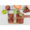 Menší děti mohou hravě krájet měkčí potraviny jako např. banán. Starší děti (4+) už mohou krájet trochu tvrdší potraviny, na které je potřeba malinko více síly, například okurku, jablko.