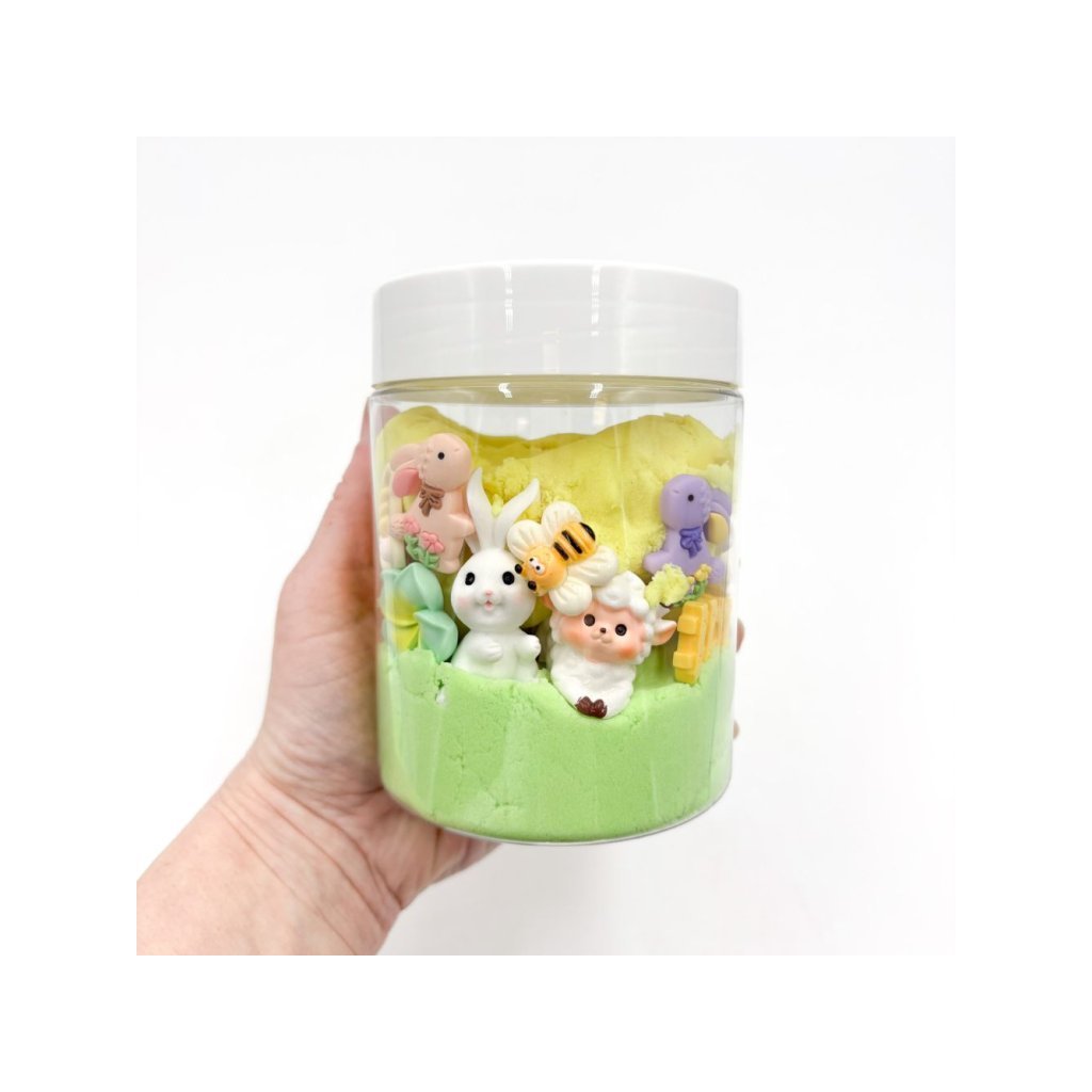 Tahle jarní kouzelná dóza s kinetickým pískem pro děti je víc než hračka. Je to malý svět, kde dítě tvoří, zklidňuje se, vypráví příběhy a rozvíjí se přirozeně – skrze radost ze hry.