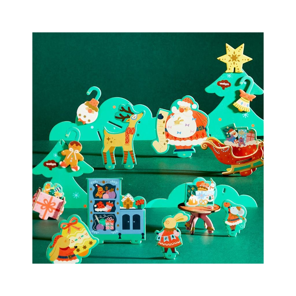 Sada obsahuje dvě desky plné veselých postaviček, ozdob a detailů, díky nimž si stromeček dotvoříte přesně podle sebe. V balení nechybí ani obrázkový návod, který vás provede každým krokem — skládání zvládnete bez lepidla i bez nářadí.