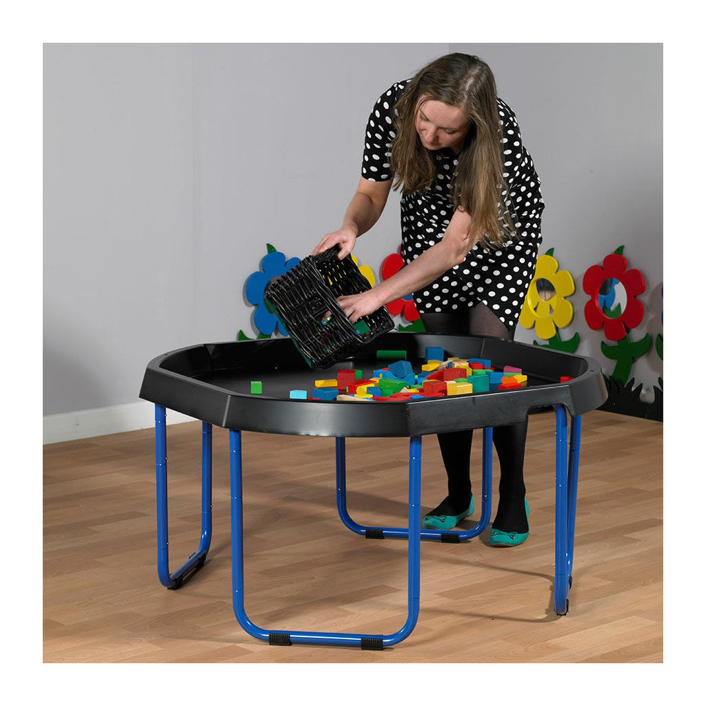 Proměňte svůj Tuff Tray Maxi v pohodlný stolek pro děti i dospělé! Modré kovové nohy zajišťují pevnou a stabilní podporu, díky které si děti mohou užít smyslové, kreativní a motorické hraní v ideální výšce. Snadná montáž, odolný materiál a nastavitelná výška podnosu umožňují hru doma, ve školce i při senzorických kroužcích – a to vše bezpečně a pohodlně!