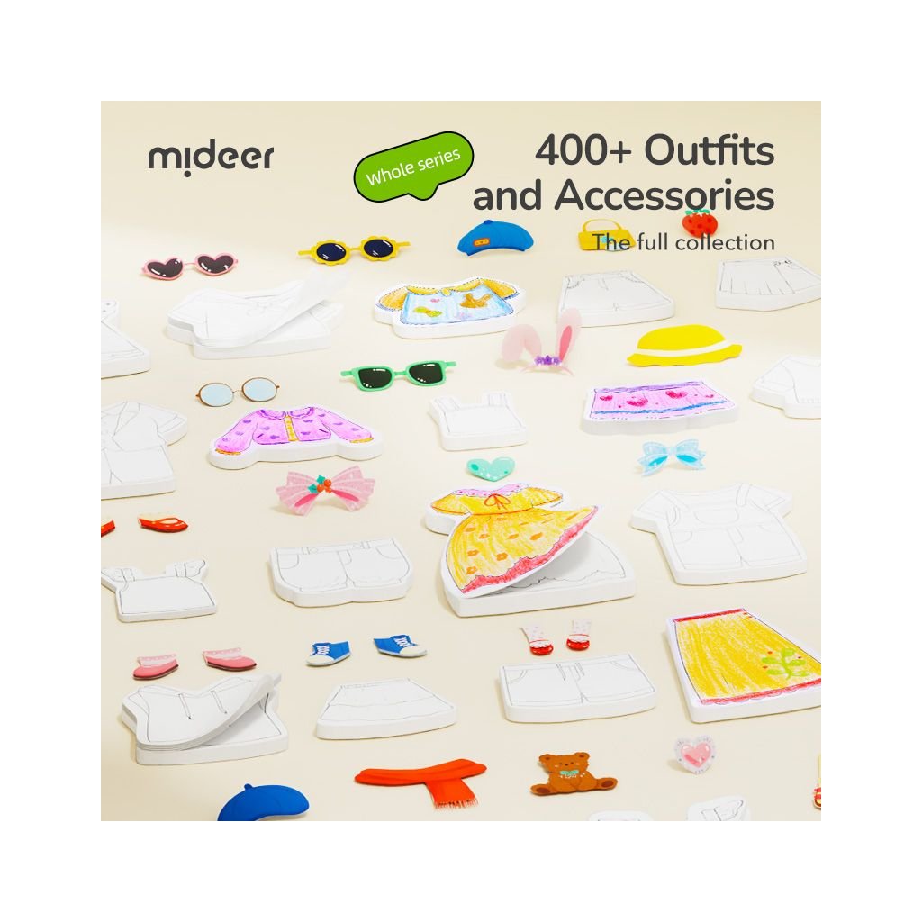 Kreativní sada Mideer Oblékání panenek je kouzelná výtvarná aktivita pro všechny malé milovníky módy, kreslení a samolepek. Děti mohou oblékat papírové postavičky, kombinovat více než 200 módních kousků a vytvářet vlastní outfity i módní příběhy. Skvělý způsob, jak podpořit kreativitu, jemnou motoriku i představivost. Vhodné pro děti od 3 let.