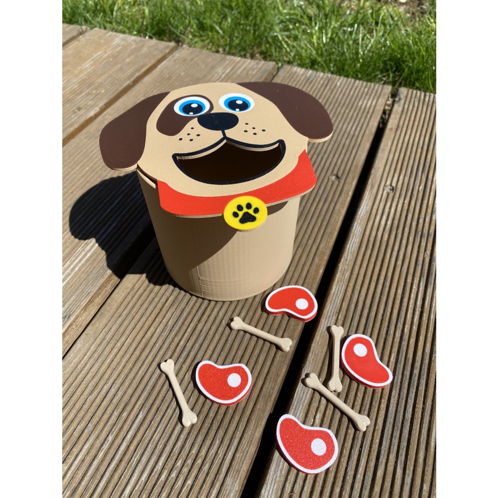 Sada je ideální pro senzorické hraní – krmení lze doplnit o další sypké materiály jako je rýže, cizrna nebo senzorická pěna. Hravým způsobem podporuje jazykový rozvoj – děti si vyprávějí, co pejsek jí, co má rád nebo jak se tváří.