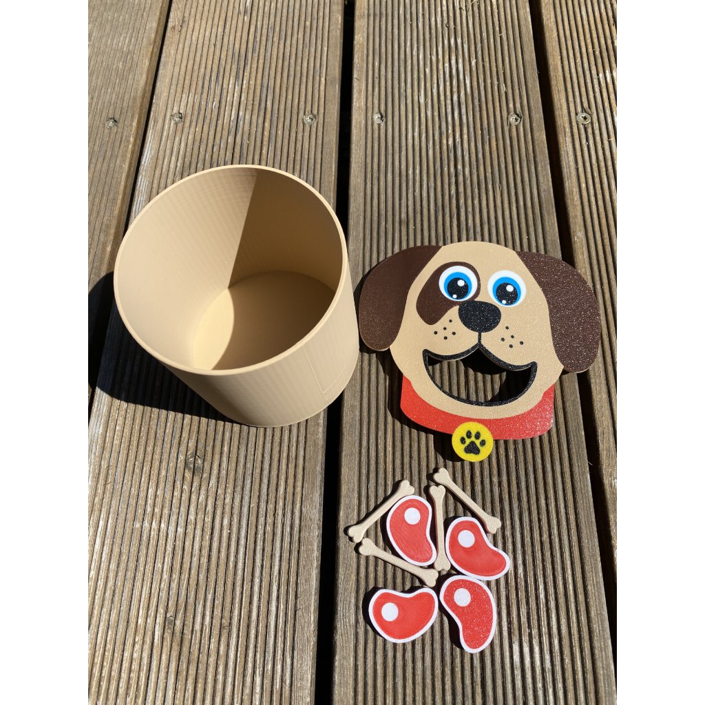 Krmíci – Sada Pejsek je dokonalá sada pro všechny malé milovníky zvířátek. Obsahuje roztomilý obličej pejska, hnědý tubus a 8 kousků krmení . Děti mohou pejska nakrmit a přitom rozvíjet jemnou motoriku, koordinaci ruka–oko i představivost.