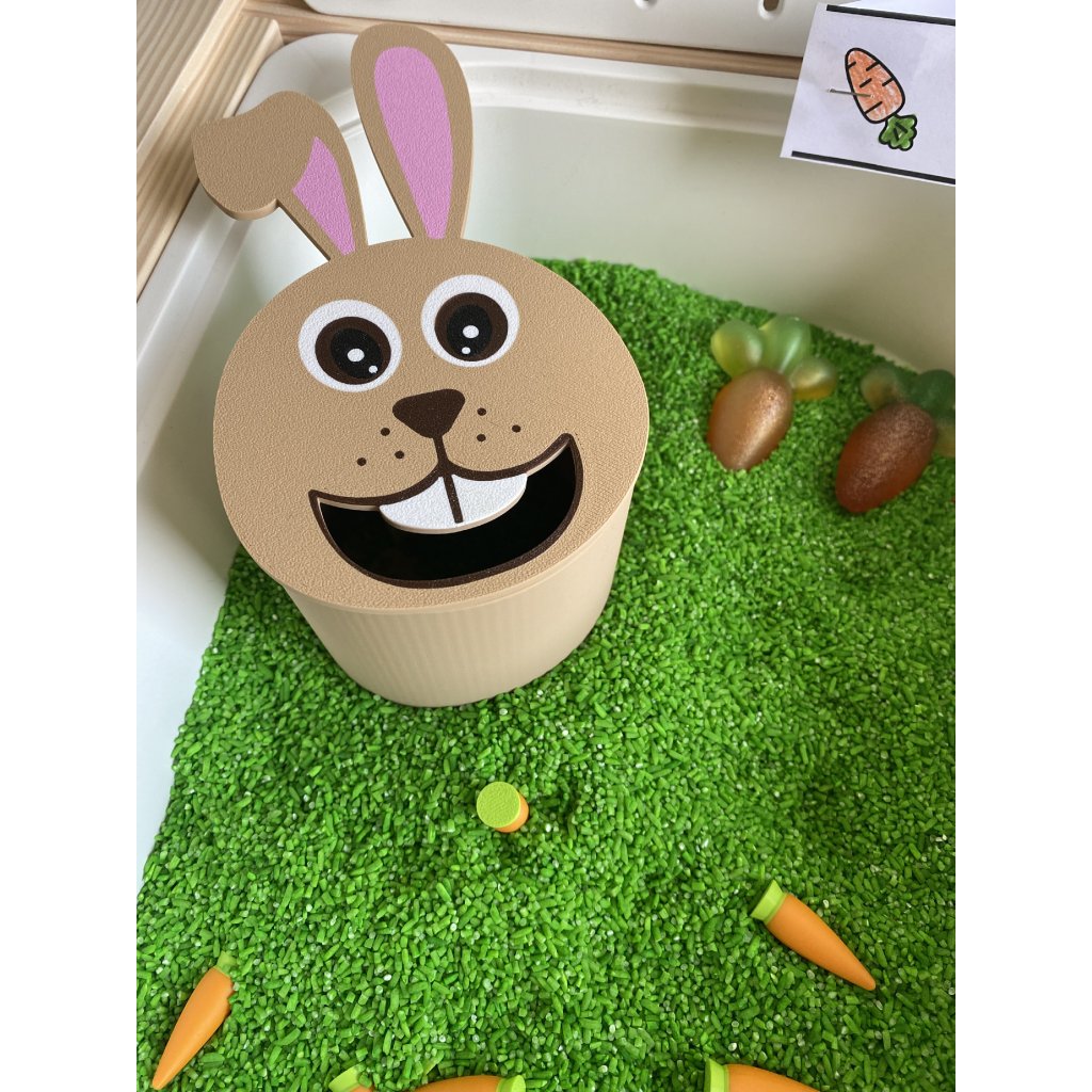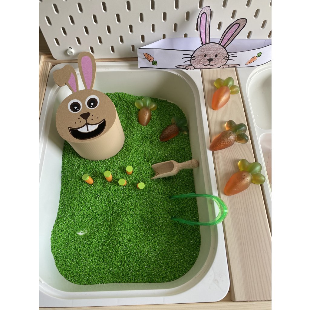 Sada je ideální pro senzorické hraní – krmení lze doplnit o další sypké materiály jako je rýže, cizrna nebo senzorická pěna. Hravým způsobem podporuje jazykový rozvoj – děti si vyprávějí, co zajíček jí, co má rád nebo jak se tváří.