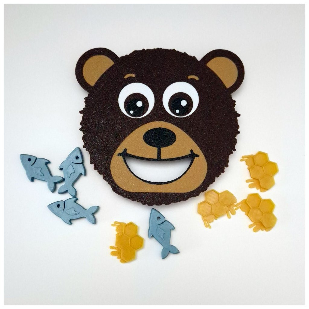 Stačí mu nasadit jeho roztomilou medvědí hlavičku na tubus (není součástí balení) a můžete začít „krmit“. Děti mohou medvědovi podávat přiložené dobroty (8 ks), anebo hru obohatit o různé sypké materiály – třeba barevnou rýži, těstoviny, nebo cizrnu.