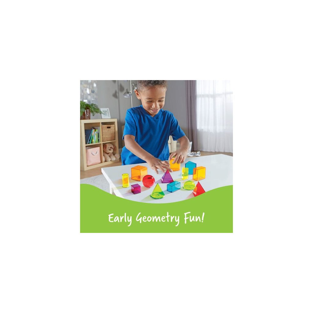 Průhledné 3D plastové tvary v této sadě geometrických těles umožňují žákům propojit 2D tvary s 3D tělesy prostřednictvím praktického učení.