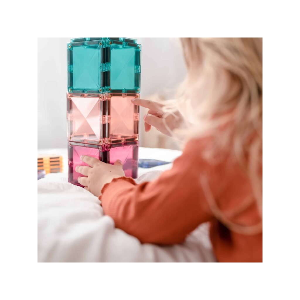Sada obsahuje pestrou paletu pastelových magnetických dílků, které se díky kvalitním neodymovým magnetům snadno spojují. Navíc dvě velké růžové základny umožňují stavět stabilnější a vyšší konstrukce – ideální pro věže, domečky, hrady, garáže i vlastní světy plné fantazie.