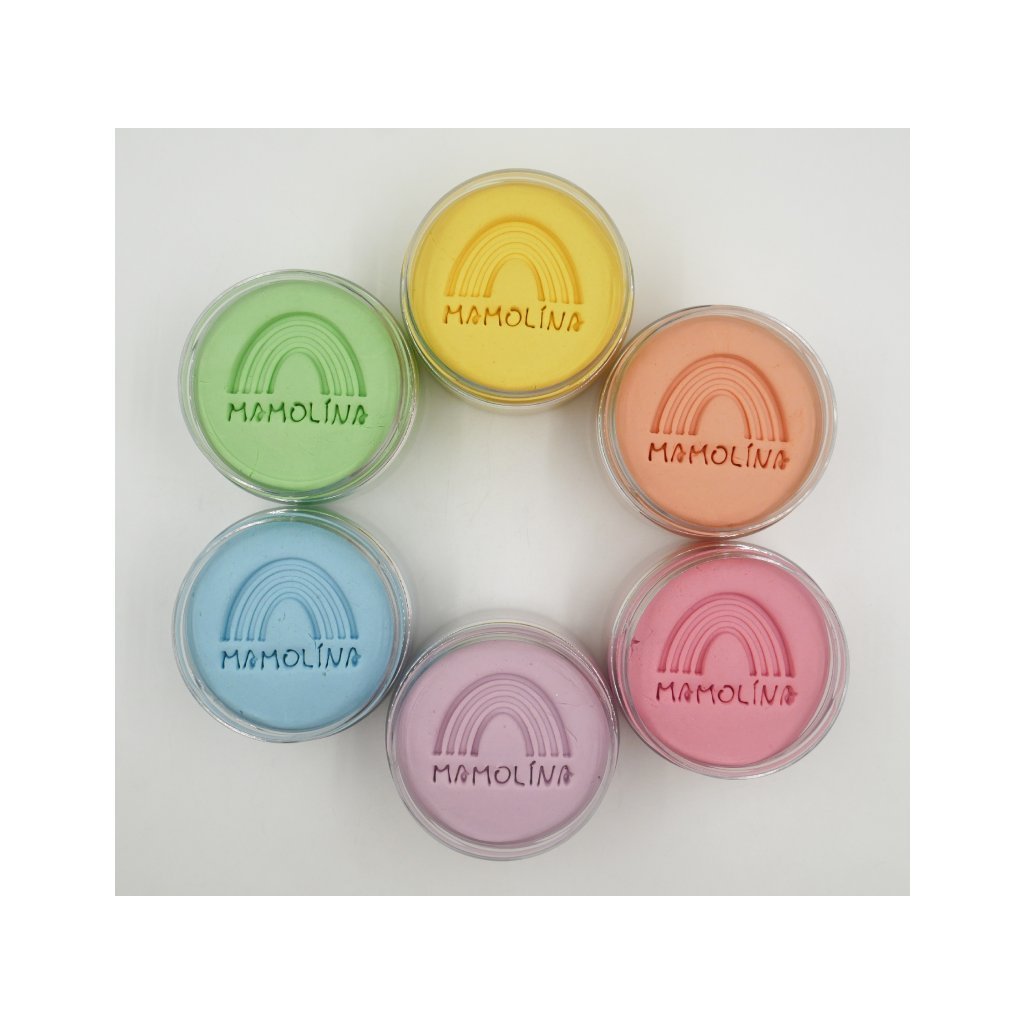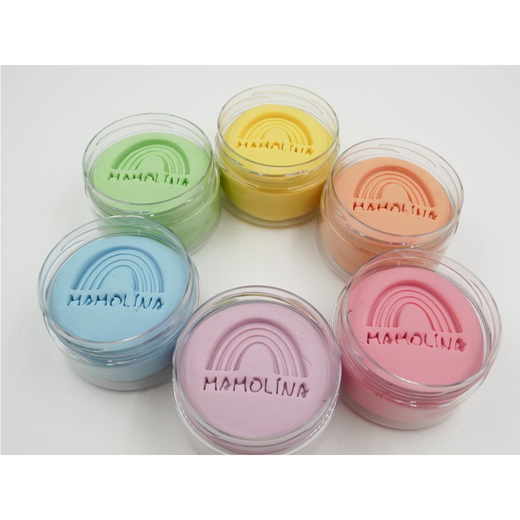 Pastelová Mamolína je ručně vyráběná domácí modelína, která je měkká, voňavá a bezpečná pro malé děti. Díky jemným pastelovým barvám a hebké konzistenci je ideální jako první modelína pro děti od 1 roku.