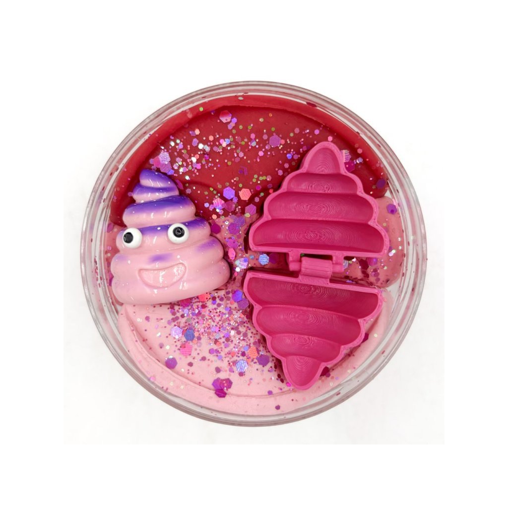 - 250g měkkoučké tříbarevné domácí modelíny ( 3 odstíny růžové, třpytky, konfety, figurka hovínka, eco PLA hovínkovač)