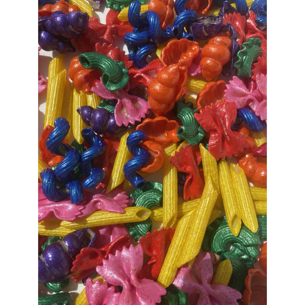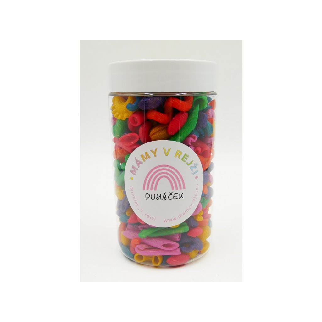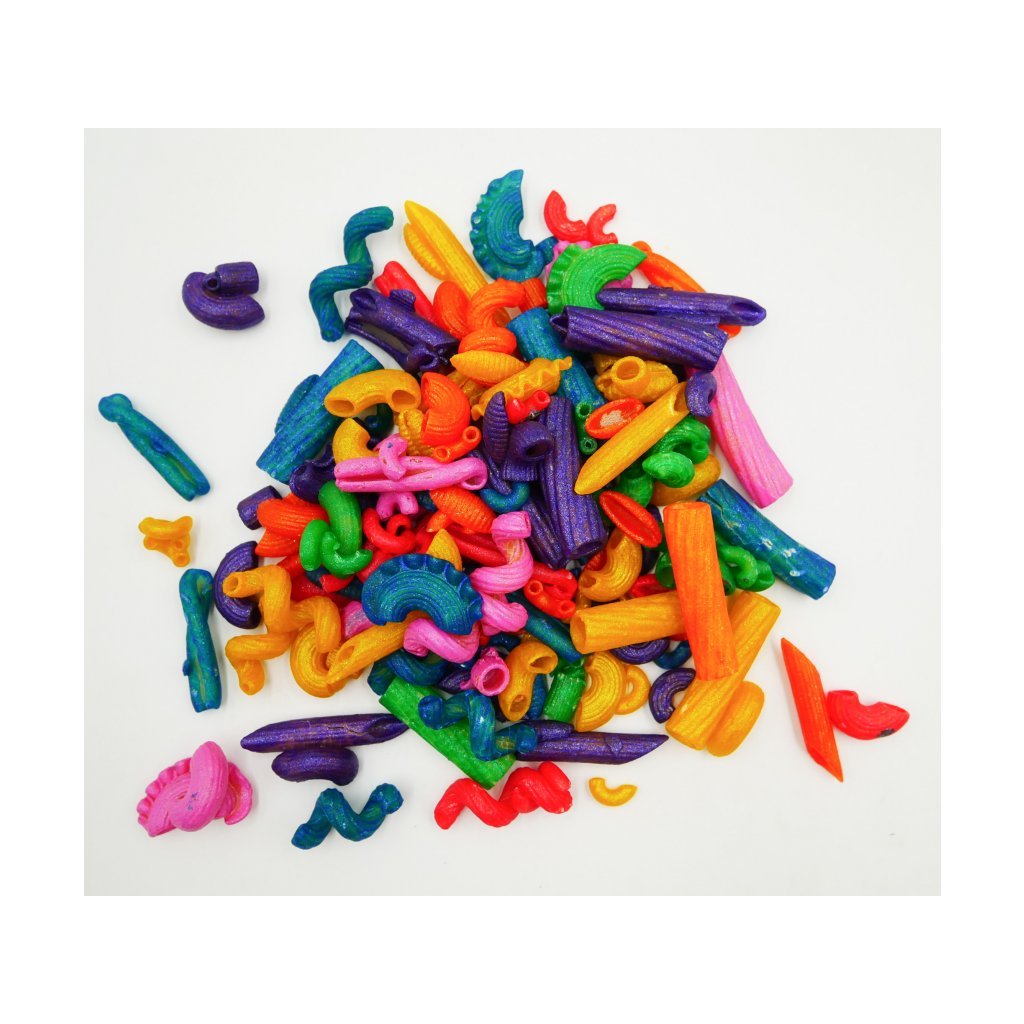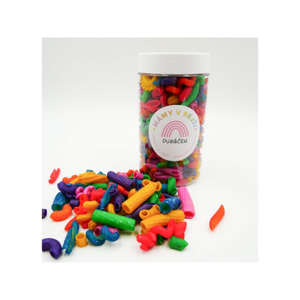 Obsah sady: 350g barevných metalických těstovin v duhových barvách