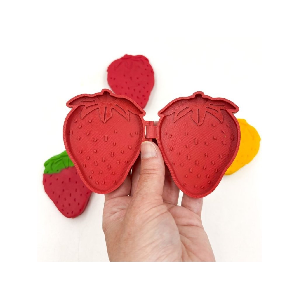 Pomůcka na tvoření jahůdek z modelíny slouží k rozvoji jemné motoriky, fantazie, tvořivosti.