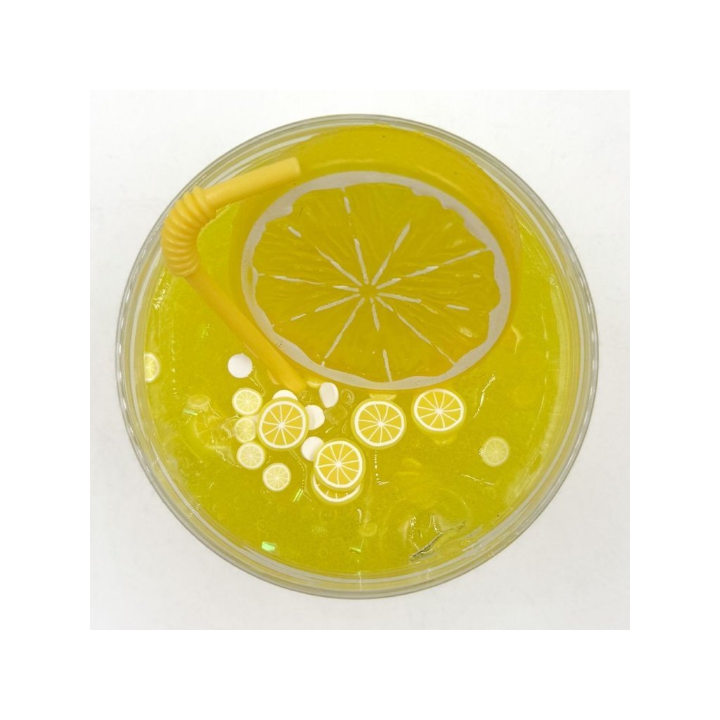 150g gelového slizu, konfety, kus citronu, brčko