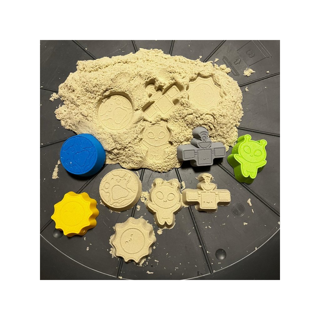 Stačí vzít hrst kinetického písku, vtlačit ho do bábovičky a hned vznikne slunce, planeta, satelit či mimozemšťan! Děti mohou kombinovat tvary, stavět vlastní vesmírné scénky, tvořit kosmické příběhy a hrát na malé astronauty a průzkumníky vesmíru.