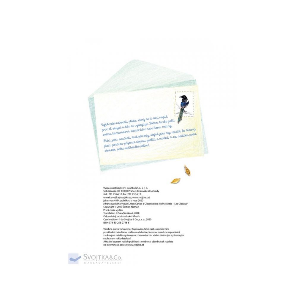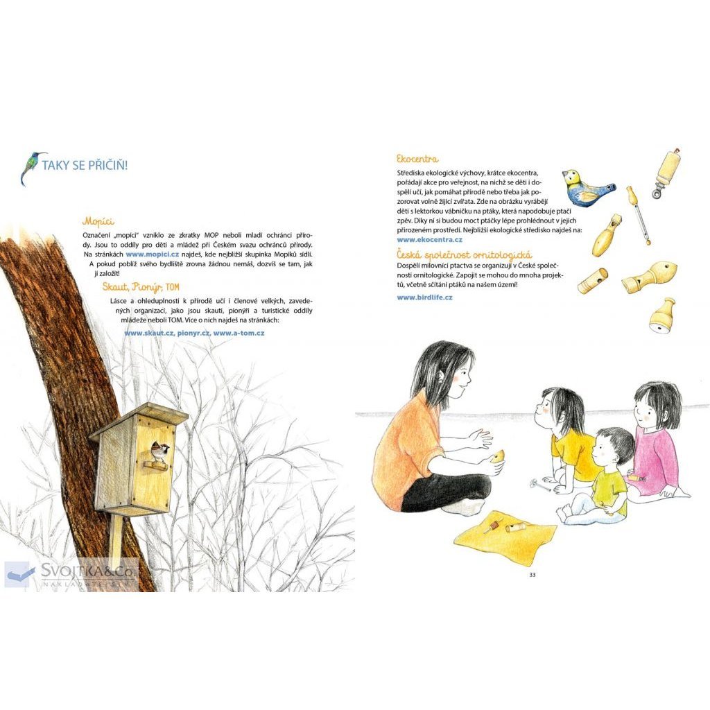 Tento pracovní sešit je jiný než ostatní. Vyzývá tě k hledání a pozorování ptáků žijících kolem tebe. Není nic jednoduššího, jelikož ptáci jsou všude, dokonce i ve městě. Stačí se k nim nenápadně přiblížit a můžeš pozorovat jejich svět. Bez ptáků si přírodu, ba ani město, nelze představit. Tento sešit ti pomůže je lépe znát a více se o ně zajímat. A jelikož se lépe chrání to, co známe a máme rádi, možná se pak také přičiníš a vykonáš něco, co ptákům pomůže. Zatřepotání křídly, pípání ve větvích… Stačí zvednout oči a hned někde spatříš nějakého ptáka. Ale víš, který to je? Díky aktivitám a hrám v tomto sešitě objevíš jejich způsob života a naučíš se je snadno rozpoznat! Taky se přičiň a jednej chraň ptáky.