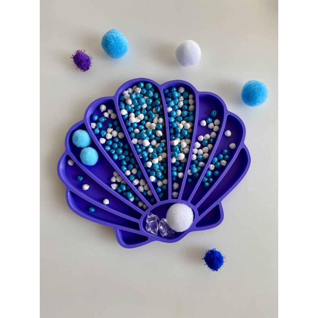 Proměňte hrací koutek v tajuplný oceán. Naše vysypávací tácky ve tvaru mušle jsou navrženy pro malé objevitele, kteří milují hmatové hry a objevování textur. Díky oblým liniím jsou tyto Montessori pomůcky ideální pro nácvik pinzetového úchopu a třídění „mořských pokladů“ – od