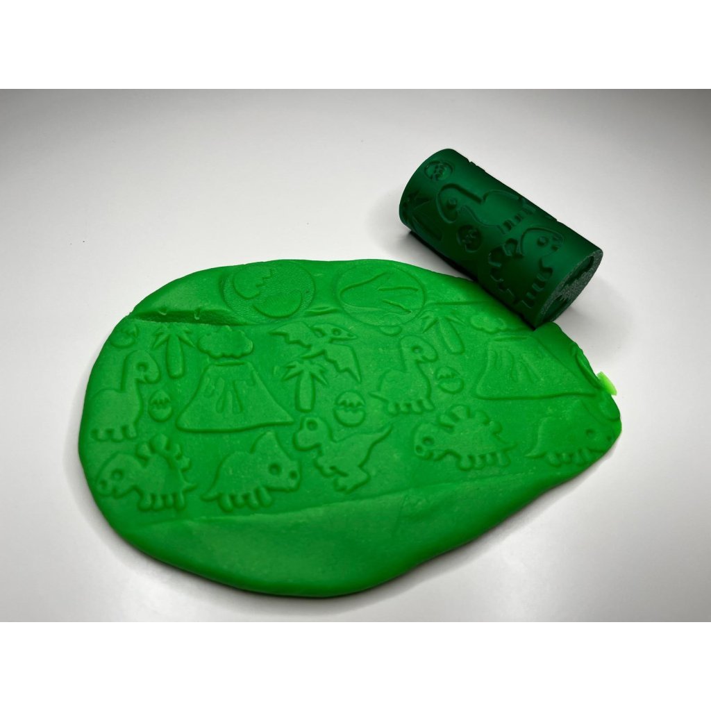 Otiskovací váleček s motivy dinosaurů a sopky přenese vaše malé paleontology do divoké krajiny pravěku. Stačí přejet po modelíně nebo kinetickém písku a hned se objeví dinosauří svět. Na obou stranách válečku najdete tematická razítka pro ještě více zábavy – stopa a dino vejce. Tento hravý doplněk podporuje rozvoj jemné motoriky, představivosti i kreativního vyprávění příběhů.