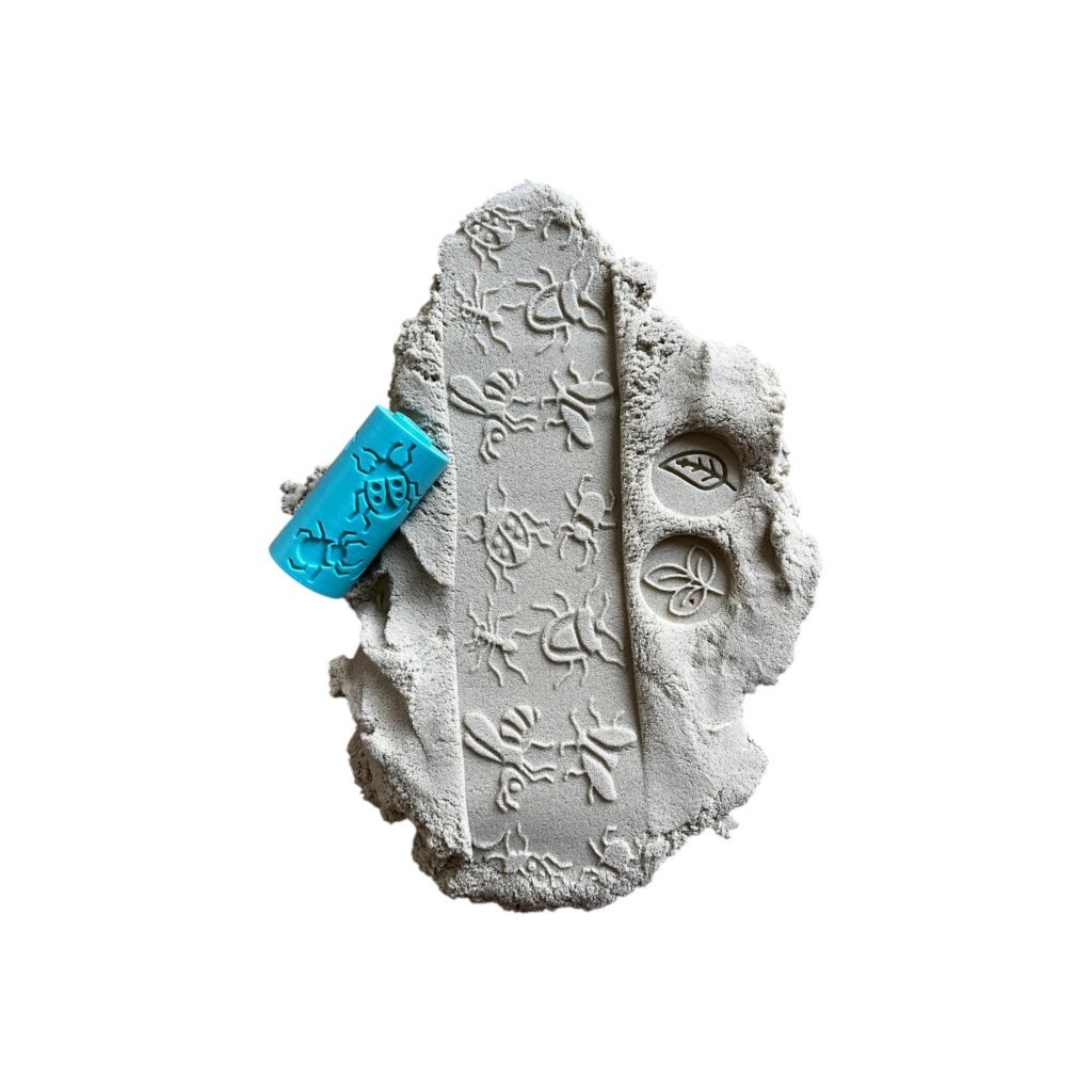 Otiskovací váleček s motivy hmyzu promění obyčejnou modelínu nebo kinetický písek v louku plnou života. Stačí jemně přejet válečkem po povrchu a objeví se otisky broučků, které mohou být součástí dětských příběhů, přírodních scenérií nebo tematického smyslového hraní.