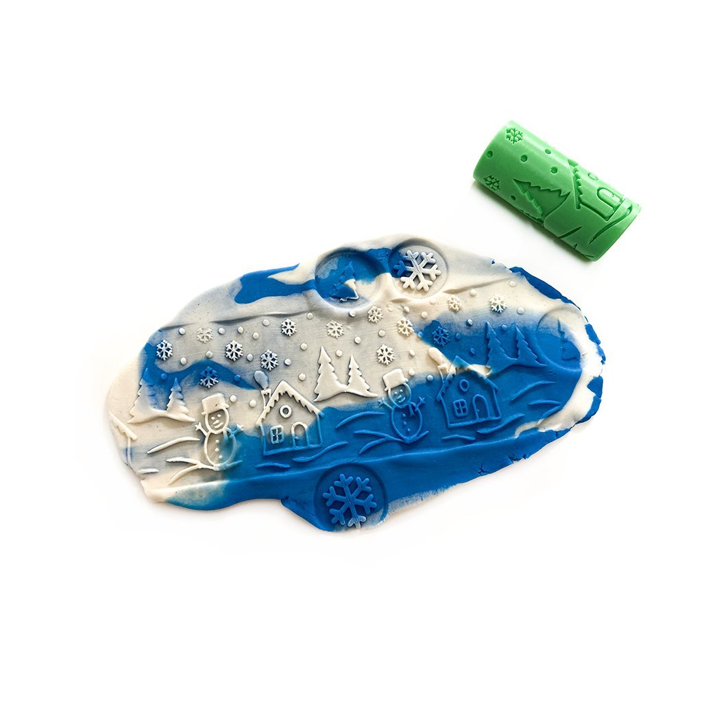 Otiskovací váleček Zimní krajina promění každou modelínu či kinetický písek v pohádkový svět plný sněhových vloček, zasněžených stromů. Jediným přejetím vykouzlí nádherné zimní vzory, které dětem otevřou dveře do fantazie. Na obou stranách válečku najdete tematická razítka, která podpoří dětskou fantazii, tvořivost i jemnou motoriku.