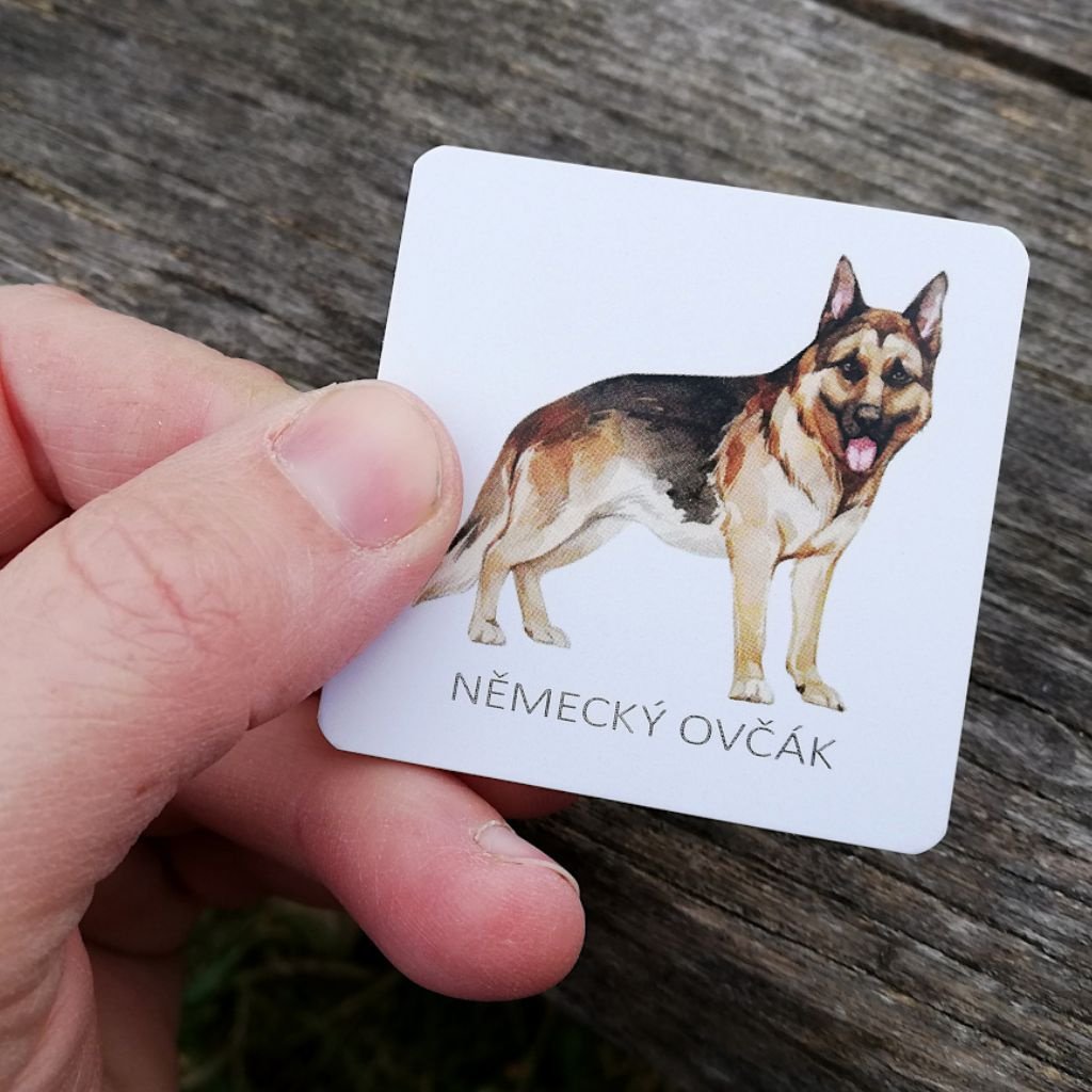 - Design: ručně malované ilustrace 16 plemen psů