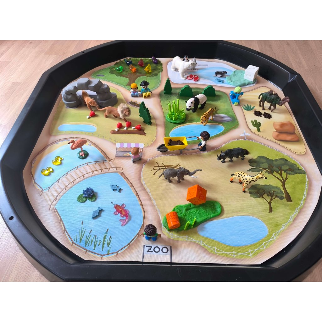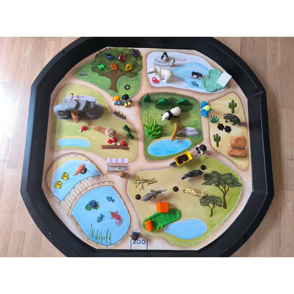 Rozviňte fantazii a smyslové hraní s podložkou ZOO od Malovaných světů! Se 7 výběhy pro zvířátka si děti mohou vytvářet vlastní příběhy, poznávat zvířata a hrát si samostatně i ve skupině. Podložka je připravena pro Tuff Tray Maxi, snadno se ukládá a stačí ji jen rozložit a přidat pár rekvizit pro okamžité dobrodružství. Perfektní kombinace vzdělávání, kreativity a zábavy!