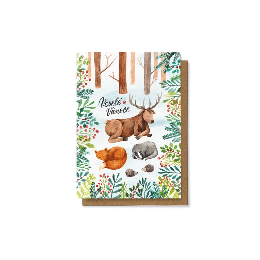 Přání "Veselé Vánoce - Zvířátka v lese"