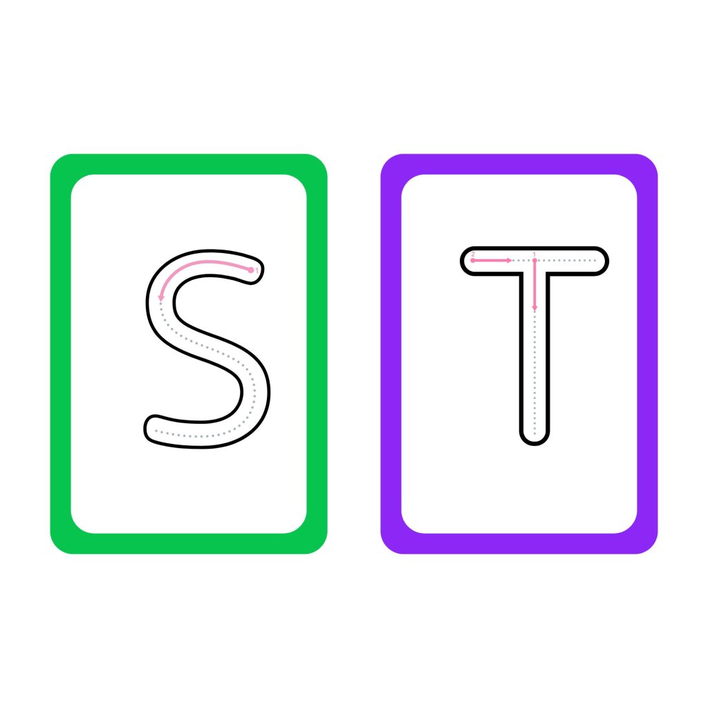 Klasické obkreslování písmen je stále základní a účinnou formou rozvoje grafomotoriky. Doporučujeme barevné fixy, pastelky nebo voskovky, aby byla aktivita hravá a motivující. Děti si postupně osvojí tvary velkých tiskacích písmen a správný směr tahů.