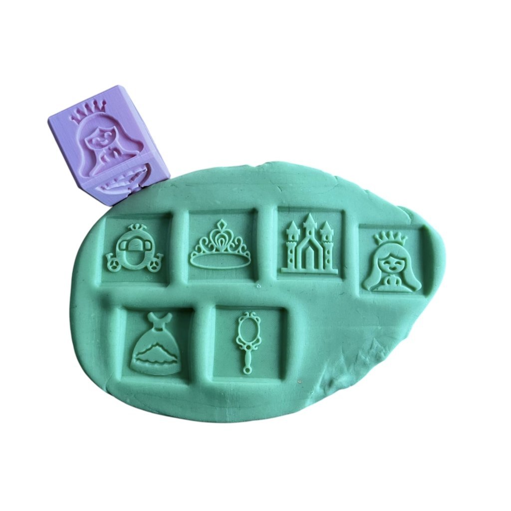 Otiskovací kostka Princezna vykouzlí do modelíny i kinetického písku motivy princezen, korunek a zámku. Vyrobeno z ekologického PLA materiálu – bezpečné pro děti, šetrné k přírodě. Skvělé pro rozvoj fantazie i jemné motoriky.