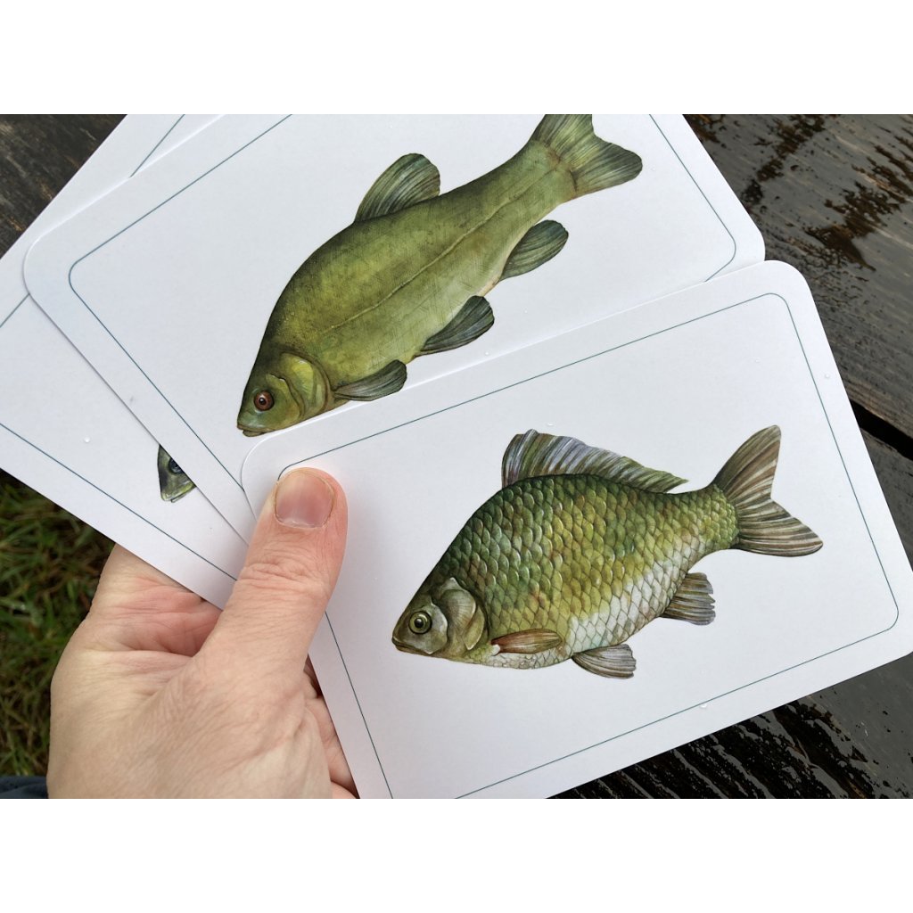 Sada originálních karet s ručně malovanými obrázky ryb, které žijí v našich vodách. Sada obsahuje 28 karet s 25 druhy ryb.