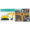 Domíchávač betonu, žlutý sklápěč a veliký bagr rozhodně nesmí chybět na žádné pořádné stavbě. Seznam se s obrovskými stroji a jejich funkcí a částmi, a poté se s posuvným kolečkem můžeš po stavbě projet a zjistit, jaká je náročná práce na stavbě a staveništi.