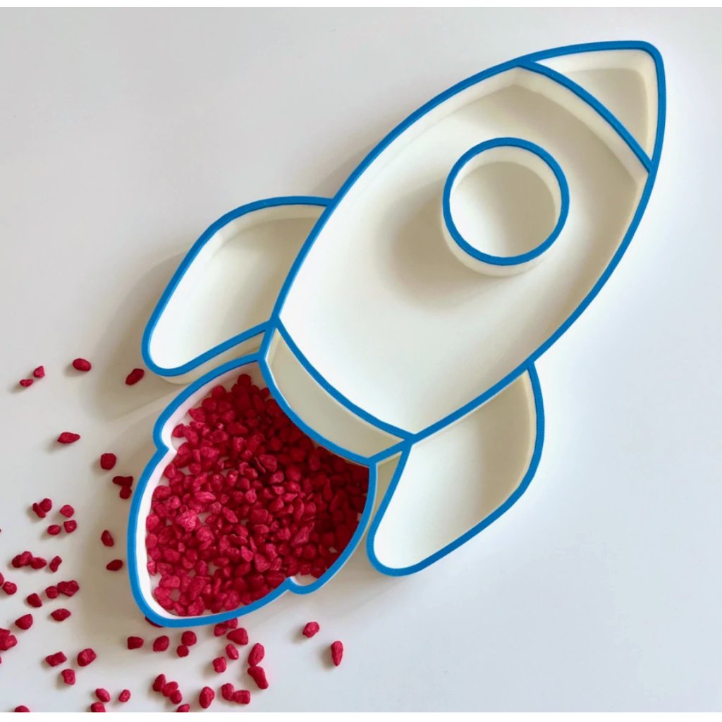 Tác Raketa pro mokré smyslové hraní je praktická pomůcka pro vesmírné senzorické hraní. Děti mohou raketu samy naplnit různými materiály – třeba barevnou rýží, cizrnou, krystalky. Tácek využijete i na mokré smyslové hraní s vodními perlami nebo šumícími prášky. Rozvíjí smyslové vnímání, jemnou motoriku a dětskou představivost zábavným a přirozeným způsobem.