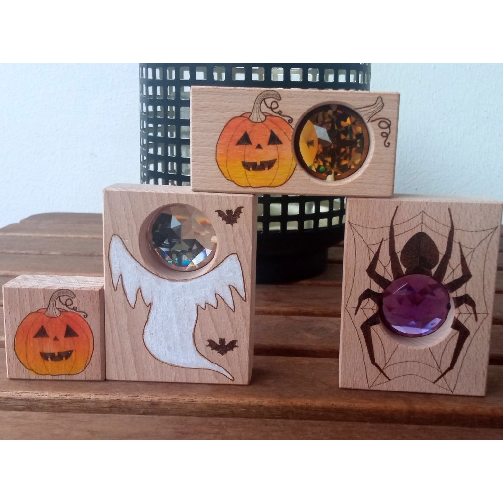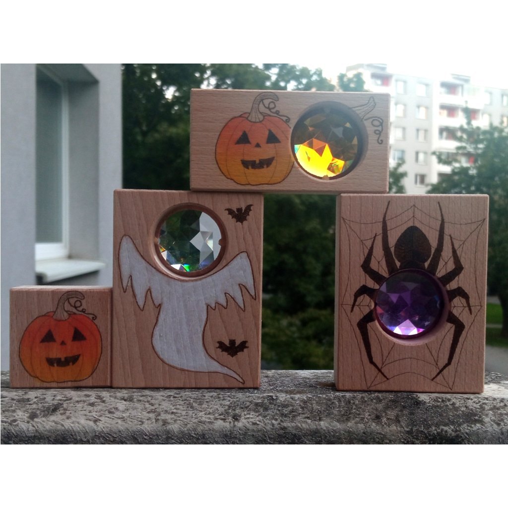 Halloween - sada dřevěných kostek se sklíčky ( 4 ks)