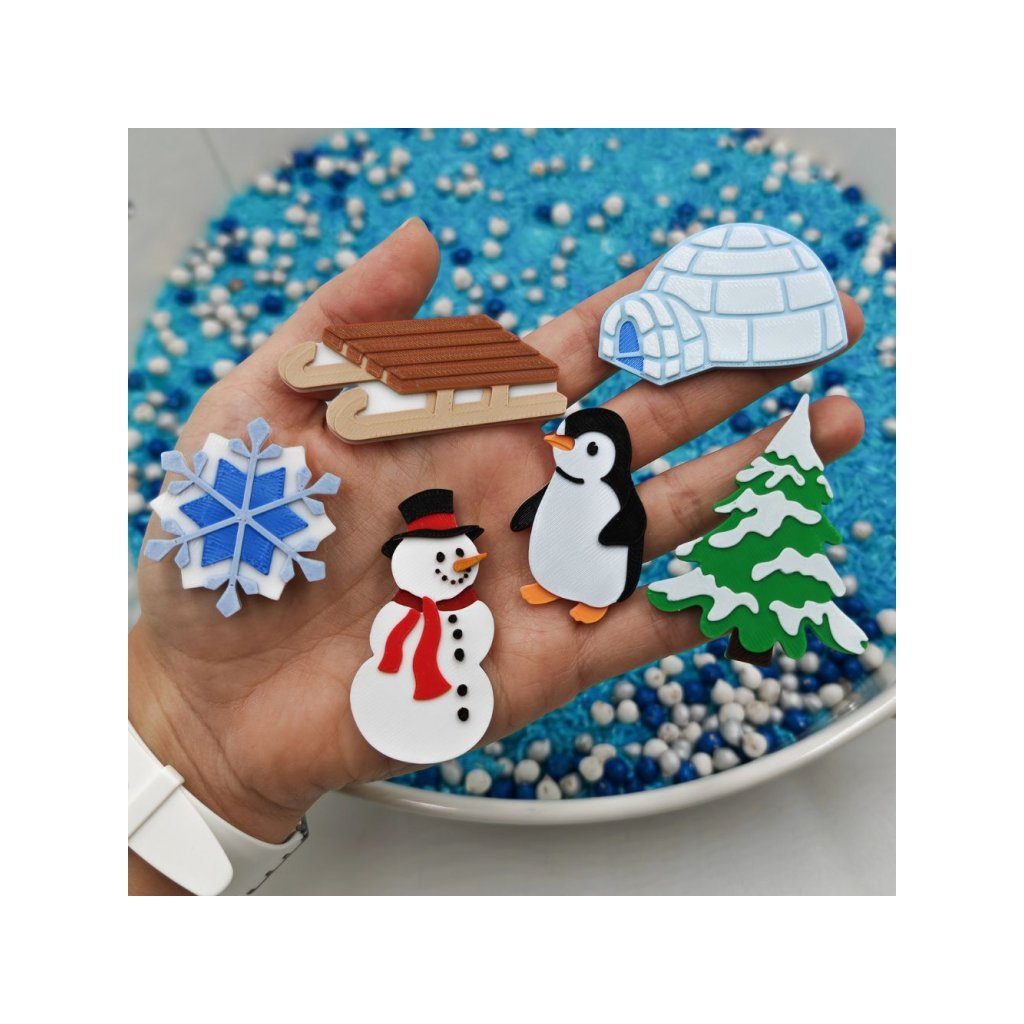 Kreativní sada miniaturních hraček, které dětem ukáží zimu. Jsou vhodné na obtiskávání do modelíny, či kinetického písku. Také je můžete poschovávat do barevného sypkého materiálu, super budou i do vodních vodní perel atd...