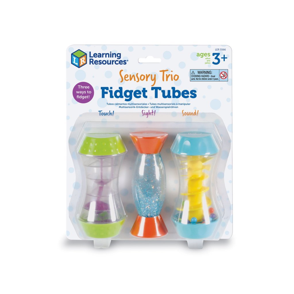 Learning Resources – Senzorické trio Fidget Tubes je sada tří senzorických tubusů, které dětem pomáhají zklidnit emoce, rozvíjet smyslové vnímání a jemnou motoriku. Každý tubus nabízí jiný efekt – kuličky, třpytky nebo písek – a vytváří tak uklidňující podívanou i zvukový zážitek.