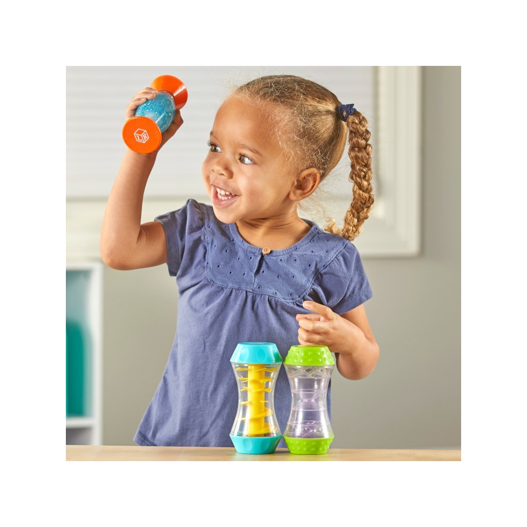 Tubusy jsou pevné, bezpečně uzavřené a velikostně přesně uzpůsobené malým dětským ručkám. Děti mohou tubusy otáčet, třást, sledovat jejich obsah a popisovat, co vidí – přirozeně tak rozvíjejí slovní zásobu i emoční inteligenci.