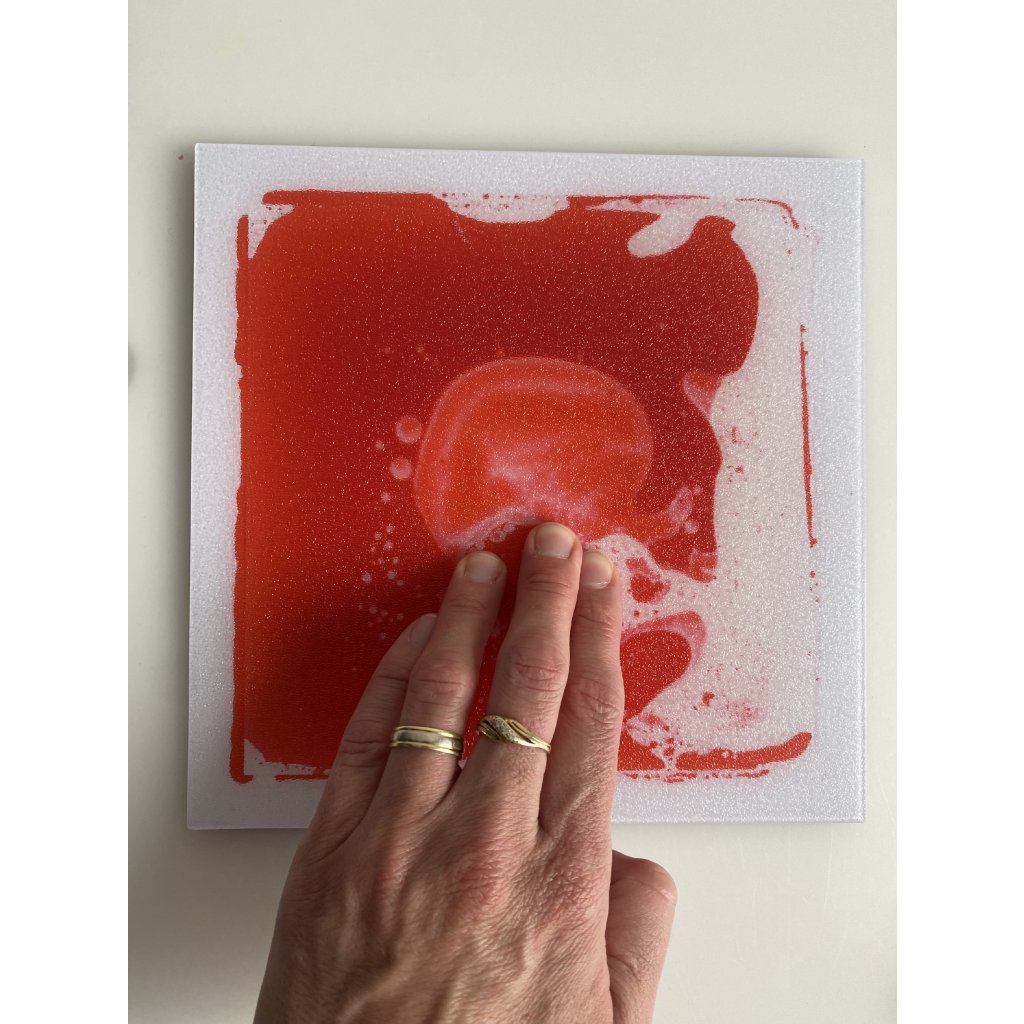 Fascinační smyslové podložky jsou naplněné barevnou tekutinou, která se při stlačení pomalým a plynulým pohybem přelévá a vytváří kouzelné, uklidňující obrazce. Děti je mohou mačkat rukama, šlapat po nich nebo po nich opatrně přecházet – a přitom se přirozeně zklidní, lépe se soustředí a zapojují zrak, hmat i propriocepci.