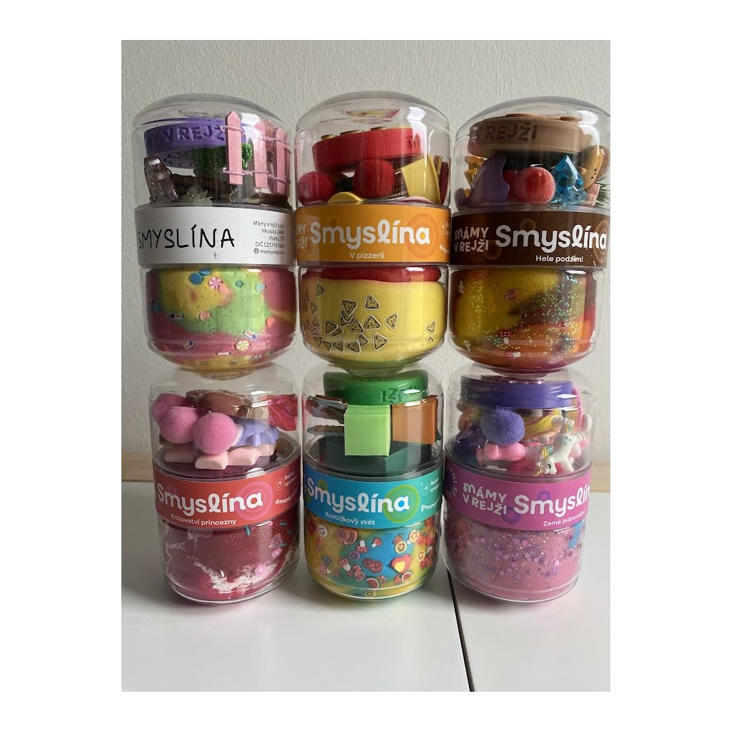 - Smyslíny - unikátní dvojdózy s tématy od princezen až po Let do vesmíru – voňavá modelía a tematické doplňky, díky kterým si děti mohou vytvořit vlastní pohádkový, dobrodružný nebo kosmický svět. Stačí otevřít víčko a hra může začít – ideální kreativní dárek pro děti od 3 let, od 4 let, od 5 let i od 6 let, pro kluky i holky.